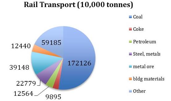 [27]“China Statistical Yearbook 2014”, Table 18-19 National Railway Freight Traffic by Category of Cargo